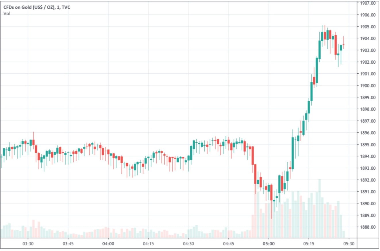 The Block Araştırma Müdürü ve gazeteci Larry Cermak da, Twitter üzerinden paylaştığı grafikler ile Trump haberleri sonrasında Bitcoin fiyatındaki düşüşü gözler önüne serdi. Cermak, aynı haber sonrasında altının gösterdiği performansı da aktarmak için altın grafiğini de paylaştı. Altın Bitcoin’in tersine, Trump haberlerine  gayet olumlu bir tepki göstererek yükseldi.